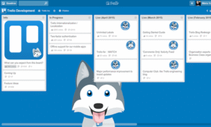 Trello adalah aplikasi dengan sistem papan Kanban. Cocok untuk mereka yang suka visualisasi pekerjaan. Setiap papan bisa diisi daftar (list) dan kartu (card) yang dapat dipindahkan sesuai progres pekerjaan.